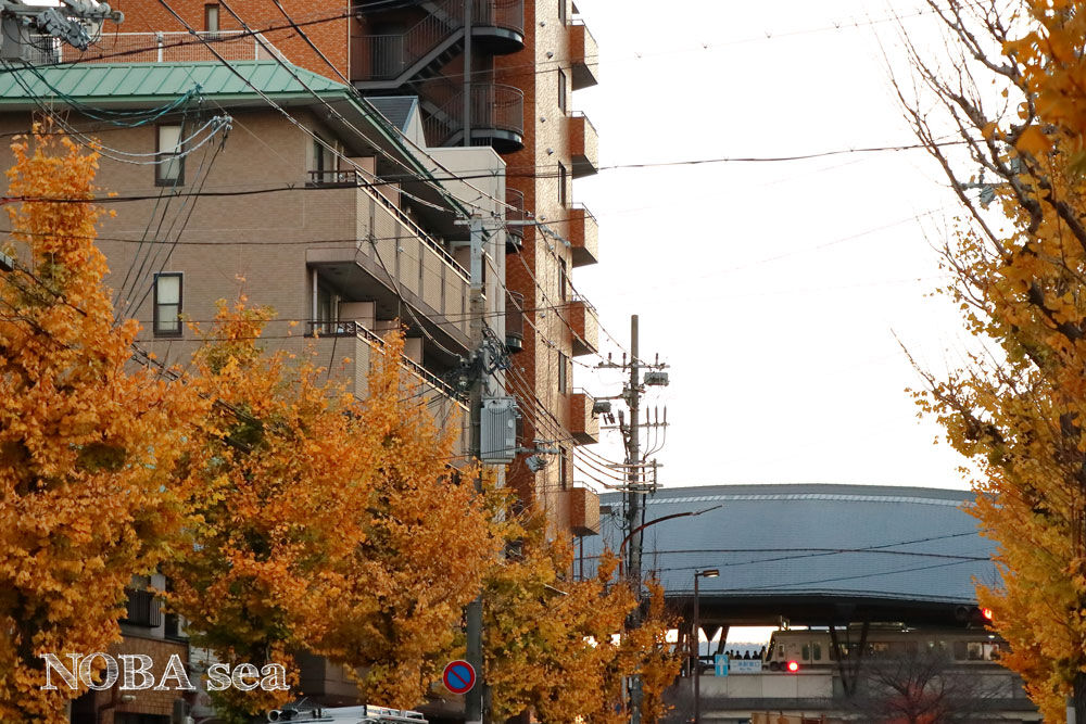 JR二条駅から東にまっすぐ伸びる御池通の銀杏並木です。