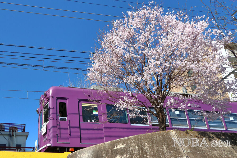 嵐電嵐山本線と嵯峨野線がクロスする付近の桜が、