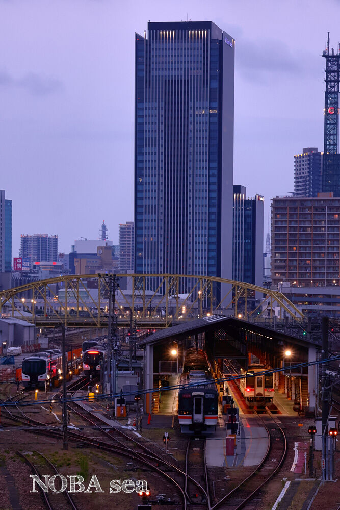 暮れ行く名古屋の高層ビル群を眺めながら、