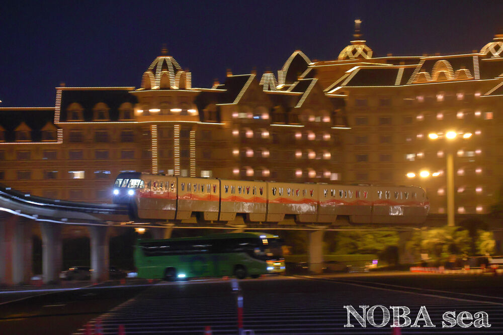 さらに、駐車場の街灯がモノレールを照らしていたので、