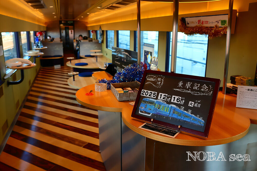 ミニ黒板に手書きの記念乗車版が用意してありました。