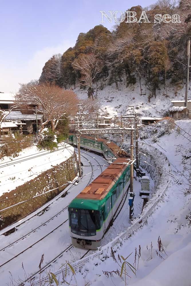 1号線から白銀の世界をやってくる京津線800系を、