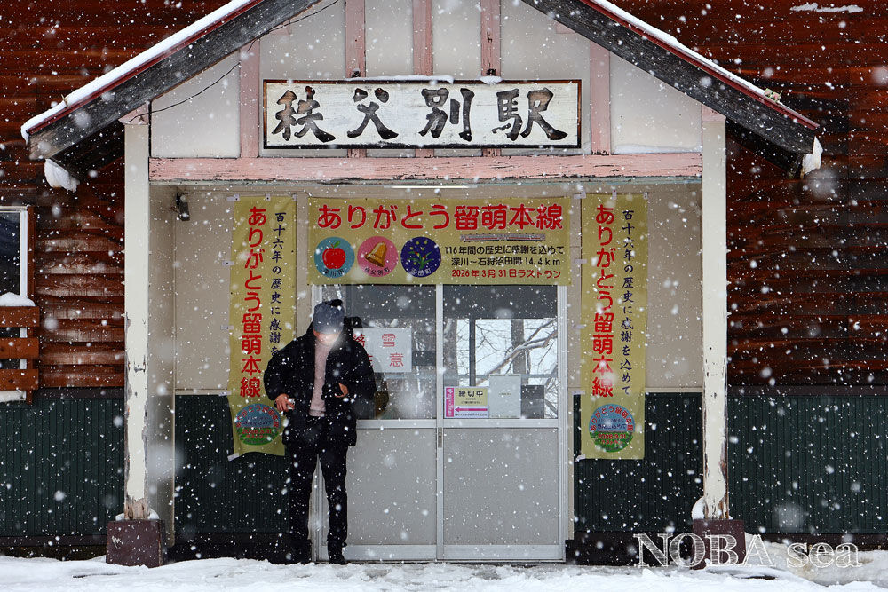 ありがとう秩父別駅 Date : 2026年03月29日 Category : 北海道 , 冬 Tag : タグ :#秩父別駅#ありがとう留萌本線#ありがとう留萌線#鉄道を撮影できることに感謝#駅#駅舎#留萌本線#雪#廃止#ローカル線 <> 「鉄道写真家番匠克久先生と行く留萌本線ファイナル撮影会」列車の合間に秩父別駅の見学&撮影でした。さすが廃止間際とあって、人の出入りが絶えません。駅入り口には、ありがとう留萌本線の旗と幕が貼り付けてありました。それがまた不思議なくらい、マッチしていたんですよね。それがまた寂しい…雪が降る中、1名の訪問者が駅舎から出てきました。やはり駅には、人影がないとなんだか絵になりません。やはり、駅に乗客は付きものです。留萌本線秩父別 2026年3月21日撮影 「北海道」カテゴリの最新記事 コメント コメントフォーム 名前 コメント 記事の評価 リセット リセット 顔 星 情報を記憶 コメントを投稿する